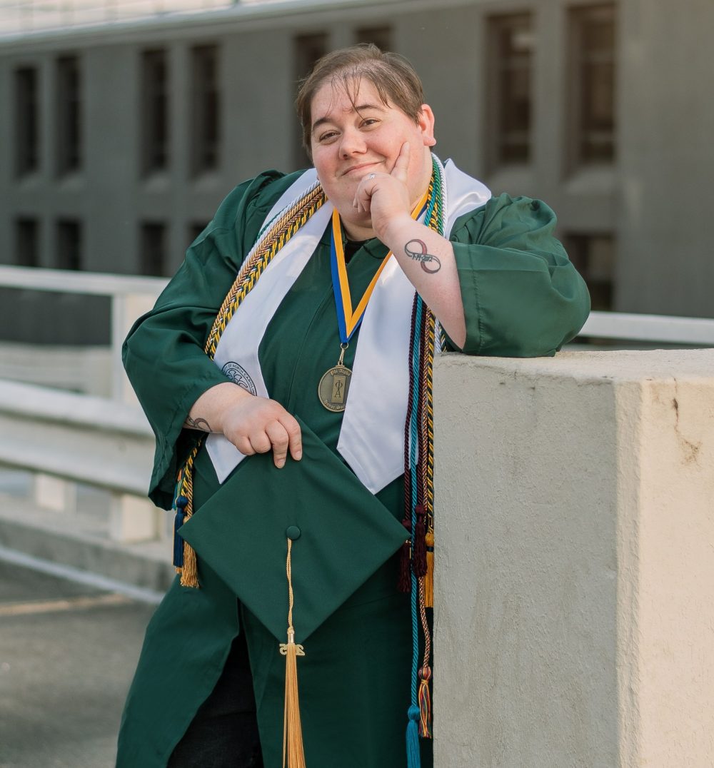 Editor’s Note: Kaitlin Ferguson is a first-generation college student who earned a Bachelor of Social Work in 2025 from UNC Charlotte and is currently pursuing a Master of Social Work at the University’s College of Health and Human Services. When she was 21 and working toward an associate degree, Ferguson suffered two strokes that left her with with memory loss and language comprehension issues that not only interrupted her studies but also her life. Based on the challenges she faced during her medical crisis, Ferguson, now 35, is planning to enter the field of medical social work where she can advocate for others.